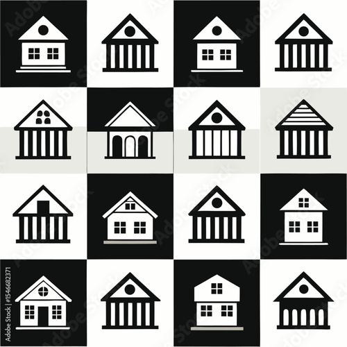 © ShemoRani, Fototapeta premium Minimalist House Icons Set - Black and White Home Symbols