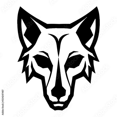 © Reytr, Obraz premium Minimalist Human Wolf Skull Head Front View Black and White Outline Line Art Drawing Style Logo