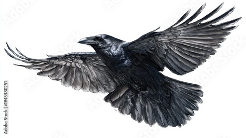 © Mykola, Naklejka premium Minimalist illustration of a raven in flight on a white background