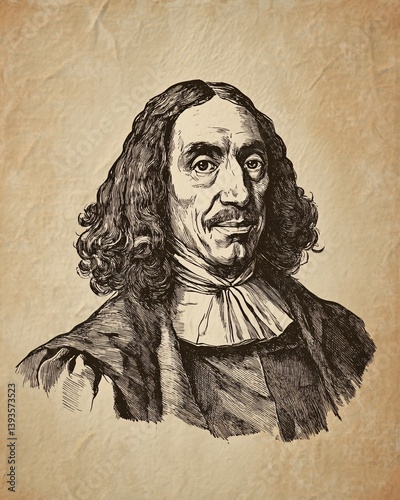 © Rostyslav, Fototapeta premium Minimalist Illustration of Baruch Spinoza with Emphasis on Thoughtful Expression