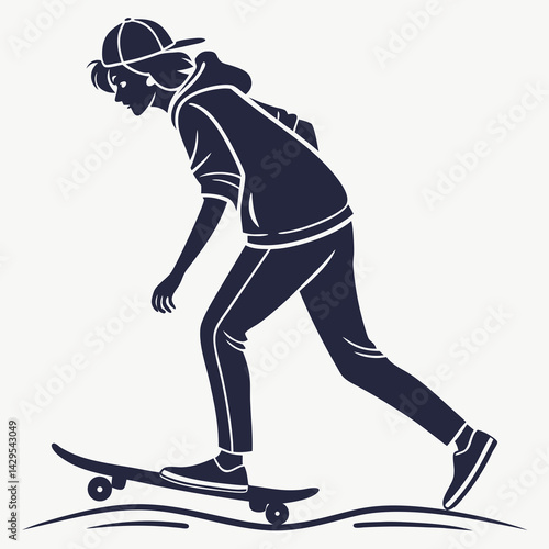 Fototapeta premium Minimalist Illustration Of Skateboarder In Hoodie And Cap Doing Skateboard...