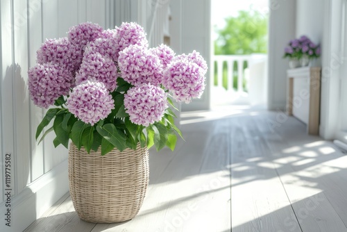 Fototapeta premium Minimalist interior bright white walls wooden flooring open doorway