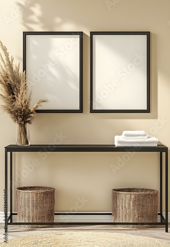 Naklejka premium Minimalist Interior Design Featuring Blank Frames and Neutral Decor