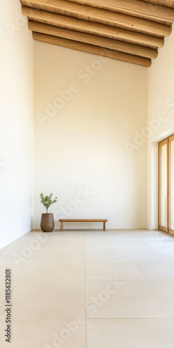© JuanM, Fototapeta premium Minimalist interior design featuring natural elements in a spacious room
