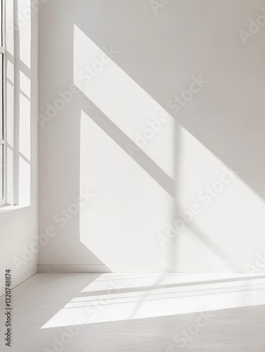 Fototapeta premium Minimalist interior design showcasing natural light patterns casting sharp...