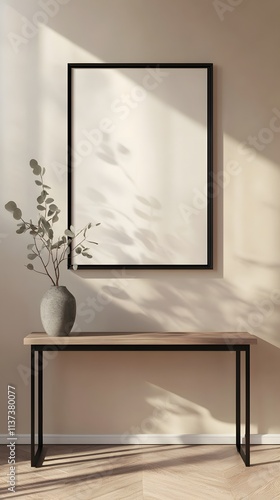 Fototapeta premium Minimalist interior design with a console table and blank frame