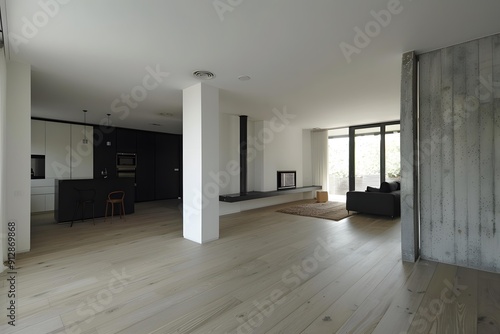 © Molang Visual, Obraz premium Minimalist Interior Design With Concrete Walls and Wooden Floors