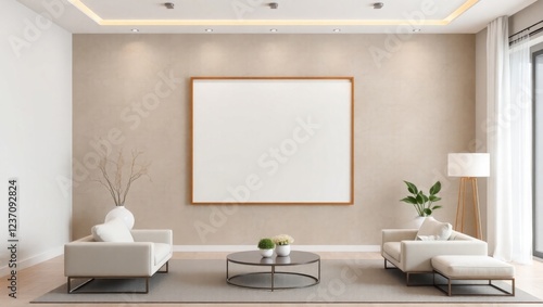 Fototapeta premium Minimalist Interior Featuring a Blank Frame on the Wall