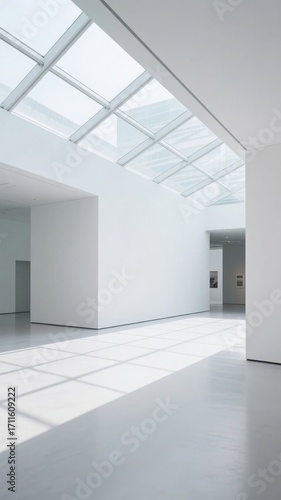 © xiangyanmeng, Fototapeta premium Minimalist interior space with skylight and white walls