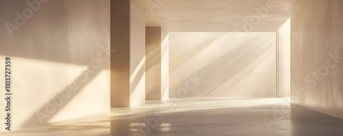 Obraz premium Minimalist Interior Sunlight Illuminates Empty Room