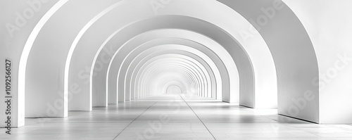 Naklejka premium Minimalist interior with arches, bright white walls and floor, spacious and modern.