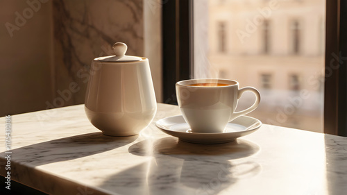 Fototapeta premium Minimalist Interior with Coffee Cup and Warm Light