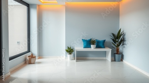 Fototapeta premium Minimalist Interior with Soft Blue Walls and Integrated Lighting for...