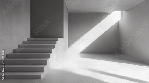 Obraz premium Minimalist interior with staircase and natural light streaming in.