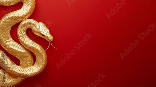 © Pichapob, Obraz premium Minimalist Interpretation of a Golden Snake on Red Background