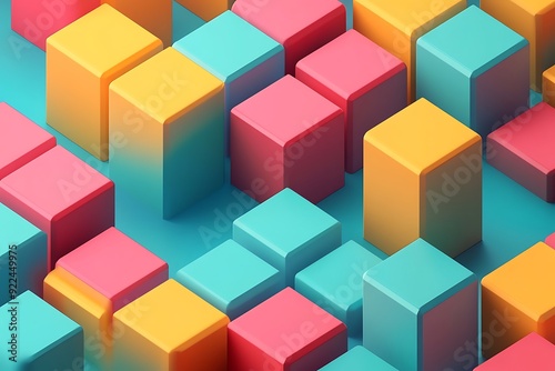 © Keattipoom, Obraz premium Minimalist Isometric Style Blocks with Simple Diamond Element