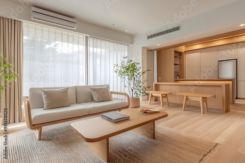 Fototapeta premium Minimalist, japandi interior design of modern living room.