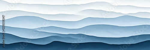 Fototapeta premium Minimalist Landscape Abstract 3D Waves in Gentle Blue Gradient, Background...