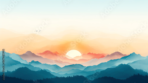 Fototapeta premium minimalist landscape flat design, front view, serene theme, watercolor,...