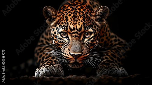 © ASHFAQ, Obraz premium Minimalist Leopard Portrait on Black Background