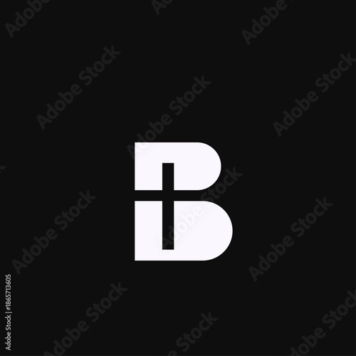 Fototapeta premium Minimalist Letter B with Christian Cross Symbol Logo Graphic on Dark Background