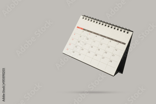 © Kwangmoozaa, Fototapeta premium Minimalist Levitating Desk Calendar Mockup on Gray Background