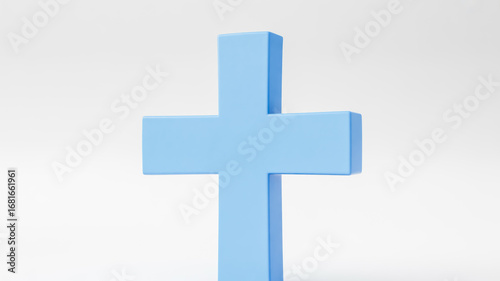 Fototapeta premium Minimalist light blue cross on white background symbolizing faith religion...