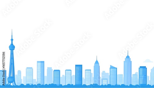 Obraz premium Minimalist light blue skyline illustration, featuring city buildings and infrastructure