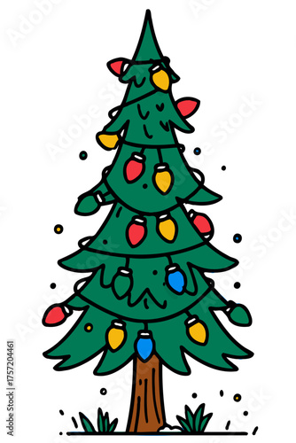 Obraz premium Minimalist Line Art Christmas Tree with Colorful Baubles and Lights