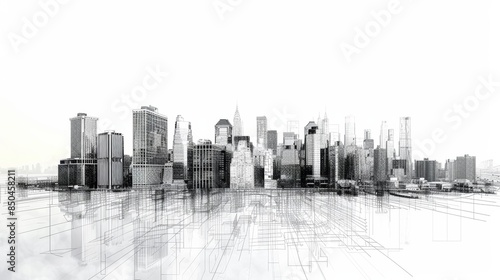 Naklejka premium Minimalist line art, city skyline, black and white, high definition, simple and clean lines, modern urban design, elegant and stylish