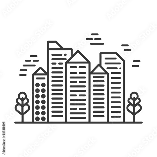 Fototapeta premium Minimalist Line Art Cityscape with Dotted Building and Stylized Trees