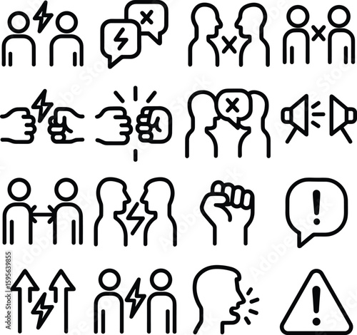 Fototapeta premium Minimalist Line Art Conflict and Aggression People Silhouette Icon Collection