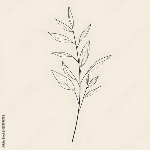 Fototapeta premium Minimalist Line Art Drawing of Bamboo Stem with Leaves