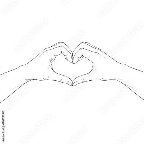 © Vhya, Obraz premium Minimalist line art drawing of two hands forming a heart shape gesture.
