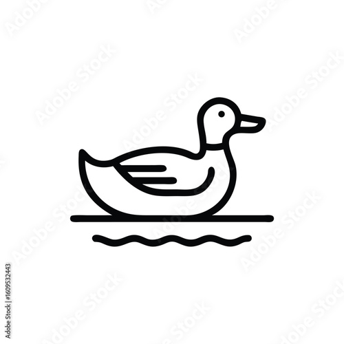 © Uttam, Obraz premium Minimalist line art duck floating on wavy water animal bird