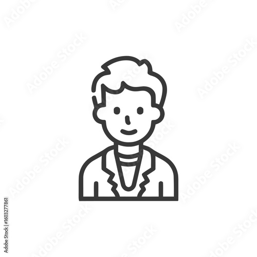 © NikahGeh, Obraz premium Minimalist Line Art Icon of a Smiling Person's Profile Avatar for User Interface