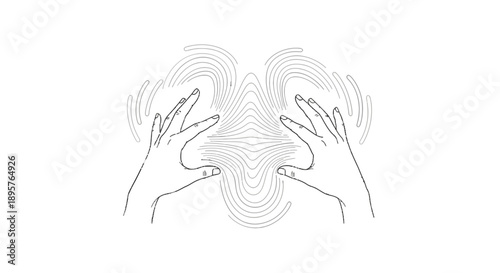 © Galax, Naklejka premium Minimalist line art illustration of hands interacting with abstract waves.