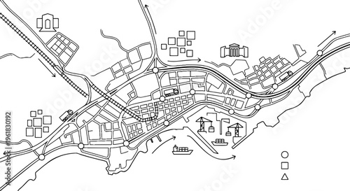 Fototapeta premium Minimalist line art map of urban transport and logistics network