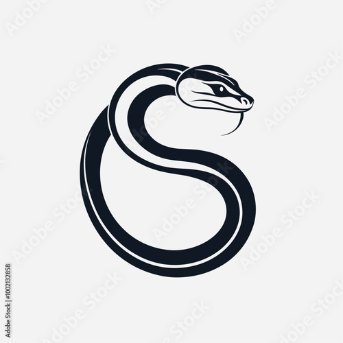 Fototapeta premium Minimalist Line Art of a Coiled Snake with Fierce Expression