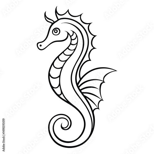 Naklejka premium Minimalist Line Art of a Seahorse for Marine and Nature Projects