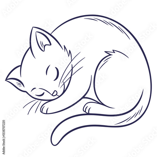 Naklejka premium Minimalist Line Art of a Sleeping Cat in a Curled Position
