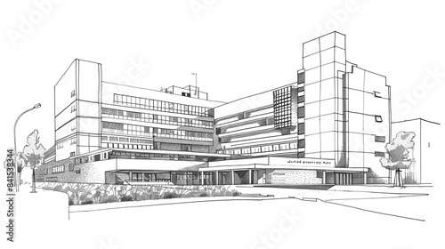 Obraz premium Minimalist Line Art of City Skyscrapers, Black and White Cityscape