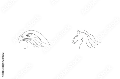 © kajallata, Obraz premium Minimalist Line Art Of Eagle And Horse Heads Vector Illustration