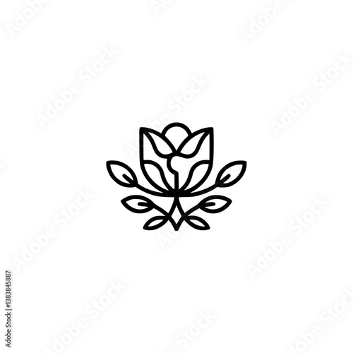 © MatandSterre, Obraz premium Minimalist Line Art Rose Logo on White, Elegant Floral Design