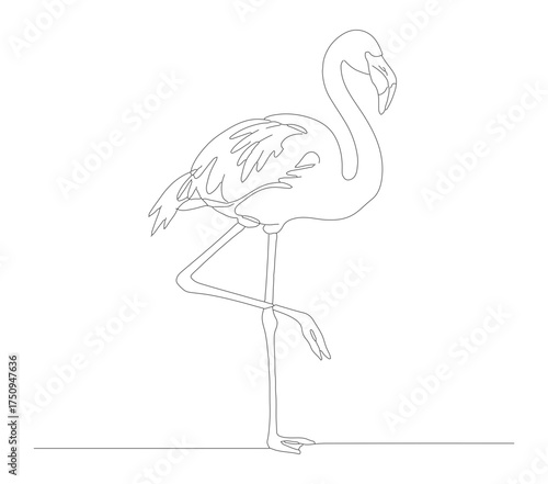 Fototapeta premium Minimalist Line Art Standing Flamingo Wildlife Bird Silhouette Illustration