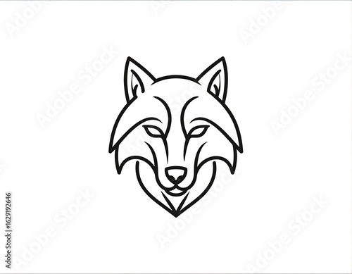 © yesdfg, Obraz premium Minimalist line art wolf head, facing forward, simple design