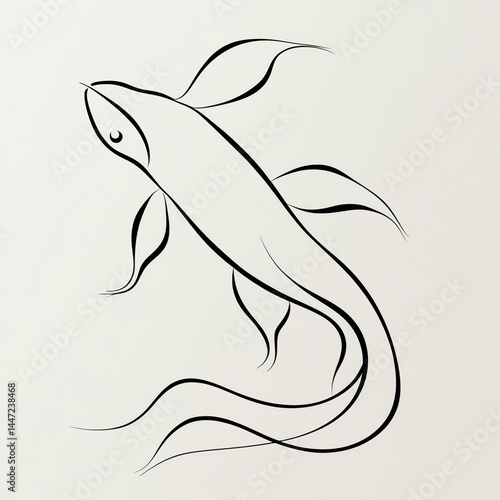 Fototapeta premium Minimalist line drawing of a fish silhouette on a white background. Simple, elegant, and modern artwork created black line.