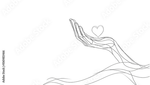 Fototapeta premium Minimalist line drawing of a heart in hand, expressing love, against a clean...