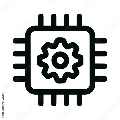 © Niricon Works, Obraz premium Minimalist Line Processor with Gear, Chip Icon for Automation Technology