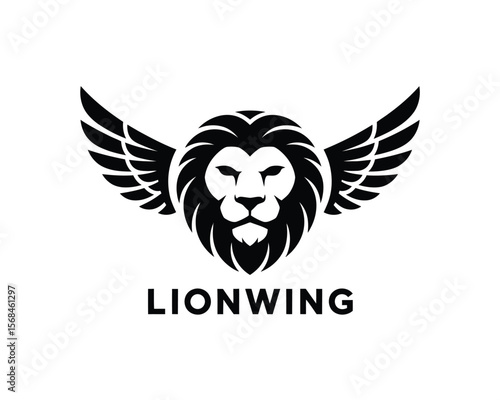 Obraz premium Minimalist Lion Head with Wings Logo – Black and White Tribal Vector Design